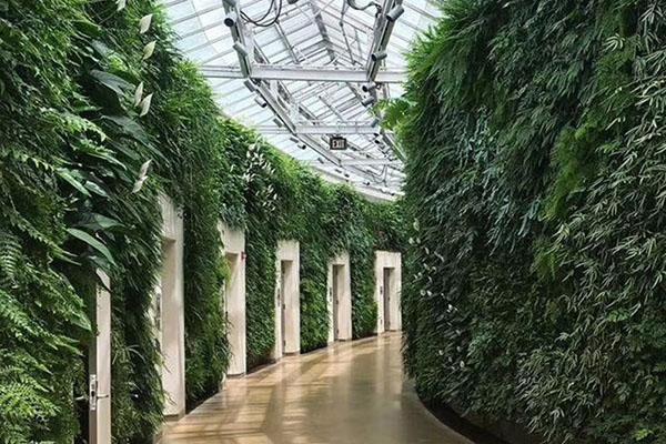 植物墙用绿色植物编植成的墙体,它既有分隔内外空间的空能,又有葱茏的色彩,给人以舒适与美感。我们根据不同环境要求,设计出了造型各异,高低错落,环境和谐的墙体造型,经过精心培植修剪,再装饰以墙顶灯具,墙面修剪出优美图案,使植物墙更显美观。