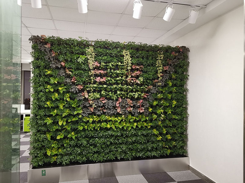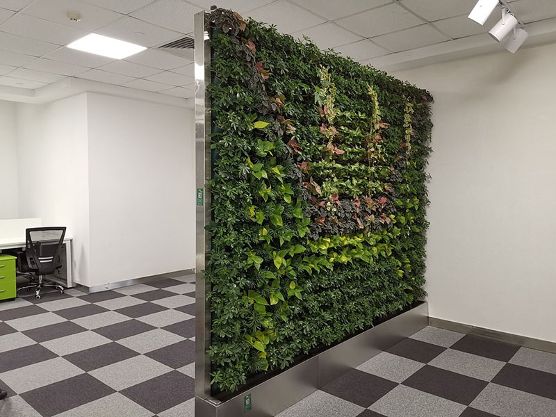 生态绿色植物墙玄关最大的不同就是:它上面的植物都是活体植物,不同颜色和品种的植物搭配成不同的图案,不仅起玄关和屏风的功能,更是带给大家更多的色彩和视觉冲击,还起到很好的净化空气、调节空气温湿度作用,白天还可吸收CO2并释放人体呼吸需要的氧气等作用。