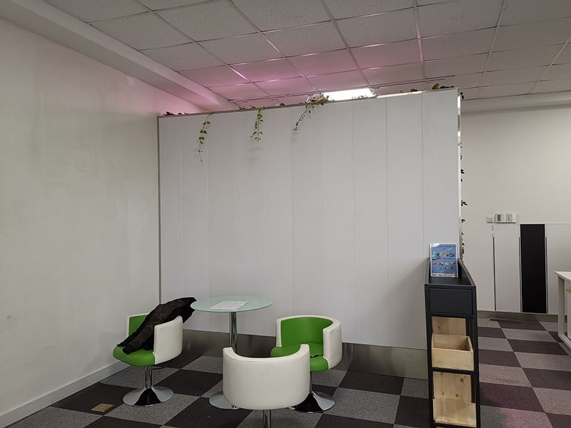这是植物墙屏风的背面,配上白色的扣板,整体简洁大方。